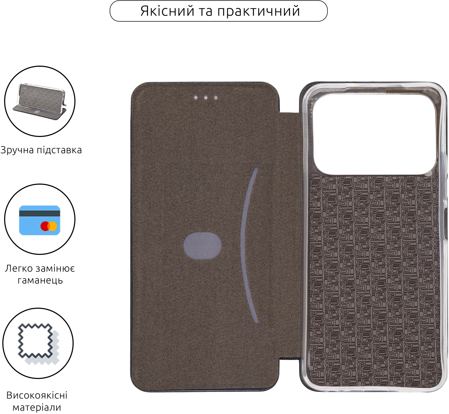 Тип чохла: КнижкаМатеріал корпусу: Поліуретан, Штучна шкіраОсновний колір: Чорний