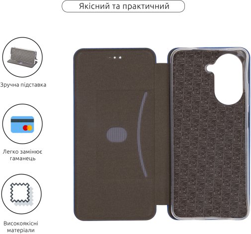Тип чохла: КнижкаМатеріал корпусу: Силікон, Штучна шкіраОсновний колір: Синій