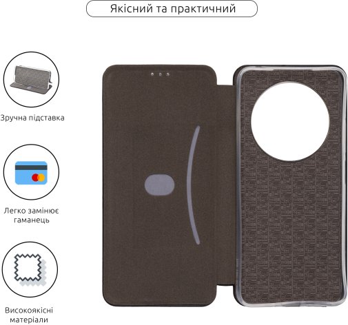 Тип чохла: КнижкаМатеріал корпусу: Силікон, Штучна шкіраОсновний колір: Чорний