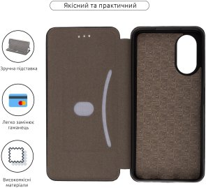 Тип чохла: КнижкаМатеріал корпусу: Поліуретан, Штучна шкіраОсновний колір: Чорний