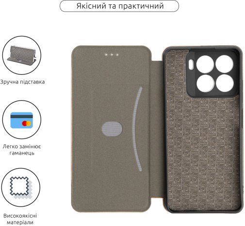 Тип чохла: КнижкаМатеріал корпусу: Поліуретан, Штучна шкіраОсновний колір: Золотий
