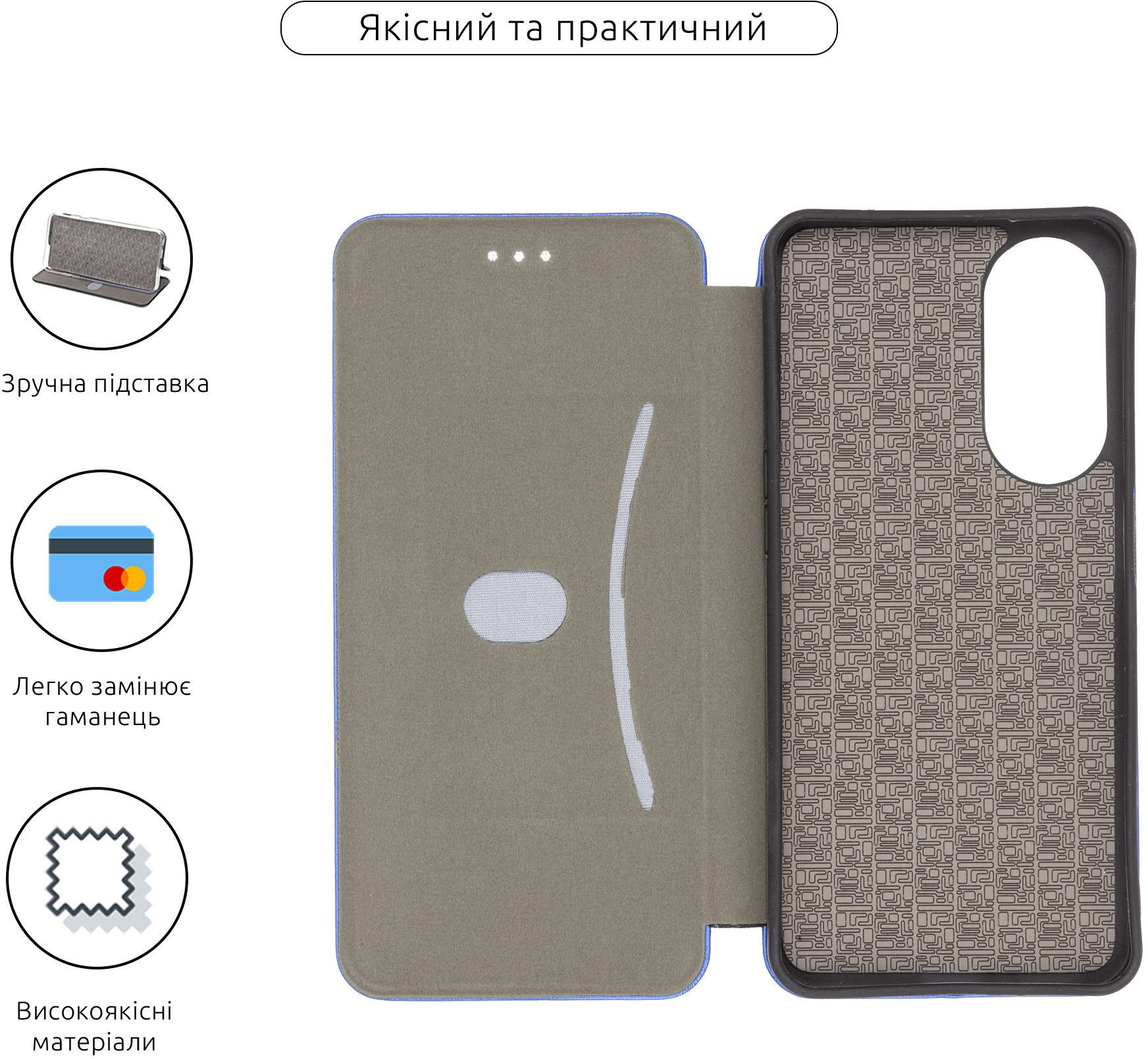Тип чохла: КнижкаМатеріал корпусу: Поліуретан, Штучна шкіраОсновний колір: Синій