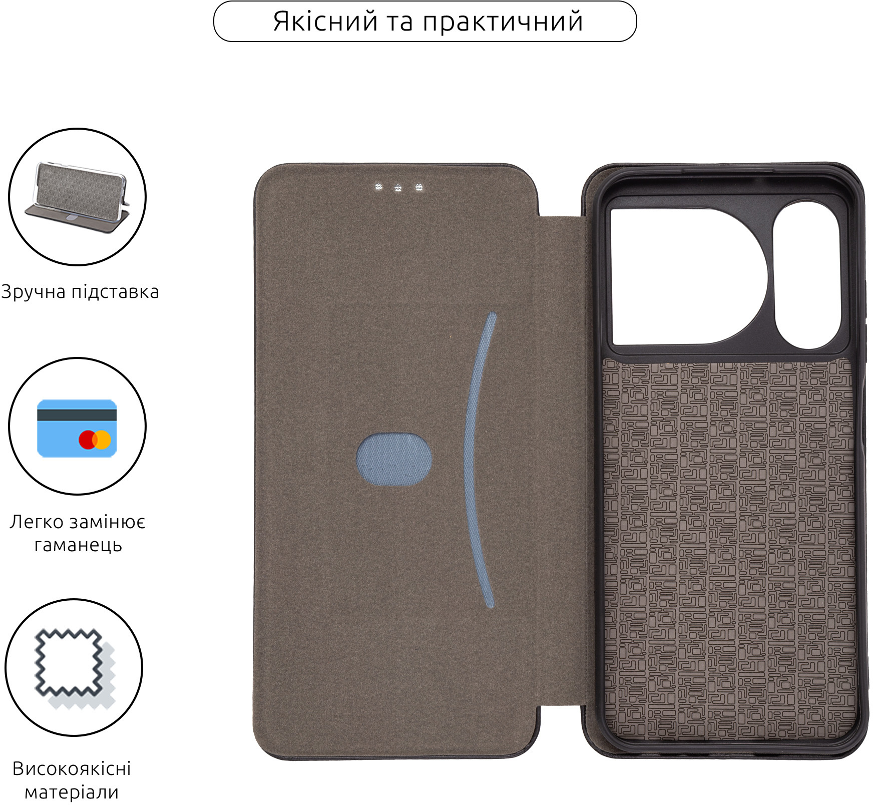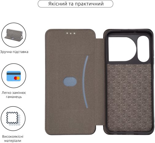Тип чохла: КнижкаМатеріал корпусу: Поліуретан, Штучна шкіраОсновний колір: Чорний