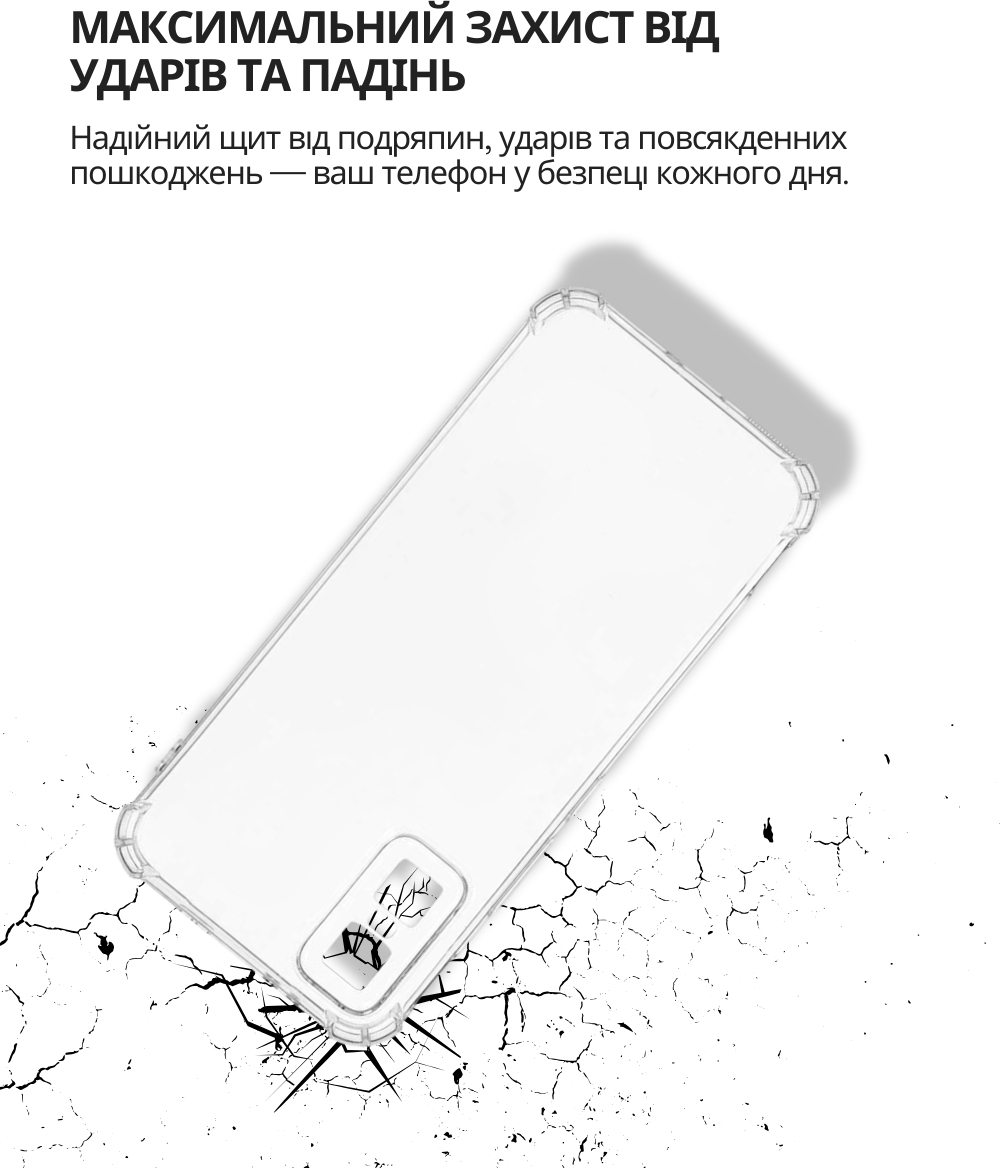 Anti-Shock панель забезпечує захист вашого телефону від падінь, ударів та подряпин. Матеріал TPU є еластичним, що дозволяє панелі адаптуватися до форми вашого смартфону та забезпечує зручний доступ до усіх кнопок та портів.