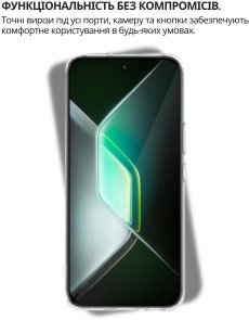 Чохол легко встановлюється, щільно прилягає до поверхні смартфона, не залишаючи повітряних зазорів, які могли б накопичувати пил, бруд або вологу. Легкий і непомітний, він не додає зайвого об'єму чи ваги вашому пристрою, забезпечуючи надійний захист від ударів, пошкоджень і вологи.