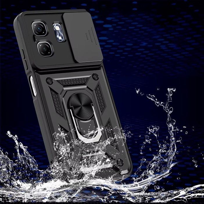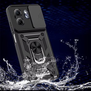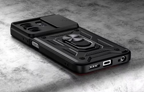 Гнучка силіконова панель має жорсткий металізований корпус та кільце-підставку для пальця. Чохол здатний витримати навіть сильні удари та подряпини.