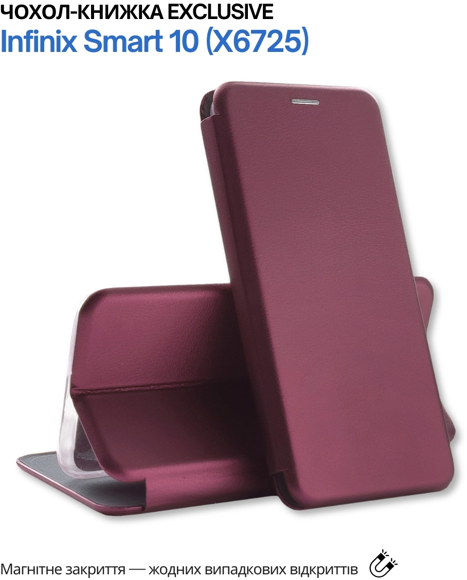 Стильний та сучасний чохол-книжка для смартфона Infinix Smart 10 (X6725). Чудовий аксесуар бордового кольору, з яким ґаджет буде виглядати ще привабливіше та буде захищеним від будь-яких механічних пошкоджень. Чохол-книжка оснащений відкидною кришкою, яка відкривається убік — це забезпечує швидкий доступ до дисплея телефону. Акуратні вирізи на портах не перешкоджають вільному доступу до них, а отвір для динаміка дозволить розмовляти, не відкриваючи чохол.