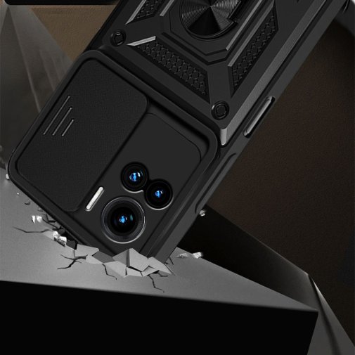 Гнучка силіконова панель має жорсткий металізований корпус та кільце-підставку для пальця. Чохол здатний витримати навіть сильні удари та подряпини.