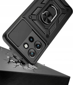 Гнучка силіконова панель має жорсткий металізований корпус та кільце-підставку для пальця. Чохол здатний витримати навіть сильні удари та подряпини.