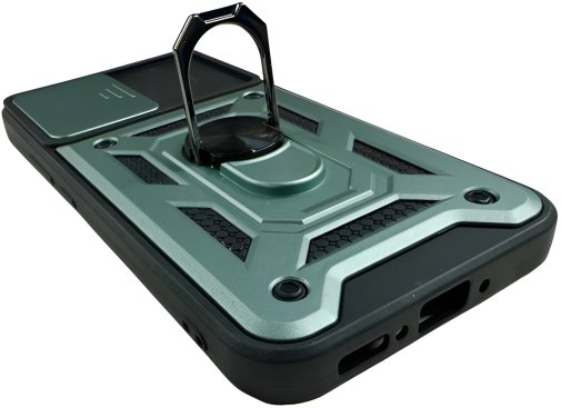 Гнучка силіконова панель має жорсткий металізований корпус та кільце-підставку для пальця. Чохол здатний витримати навіть сильні удари та подряпини.