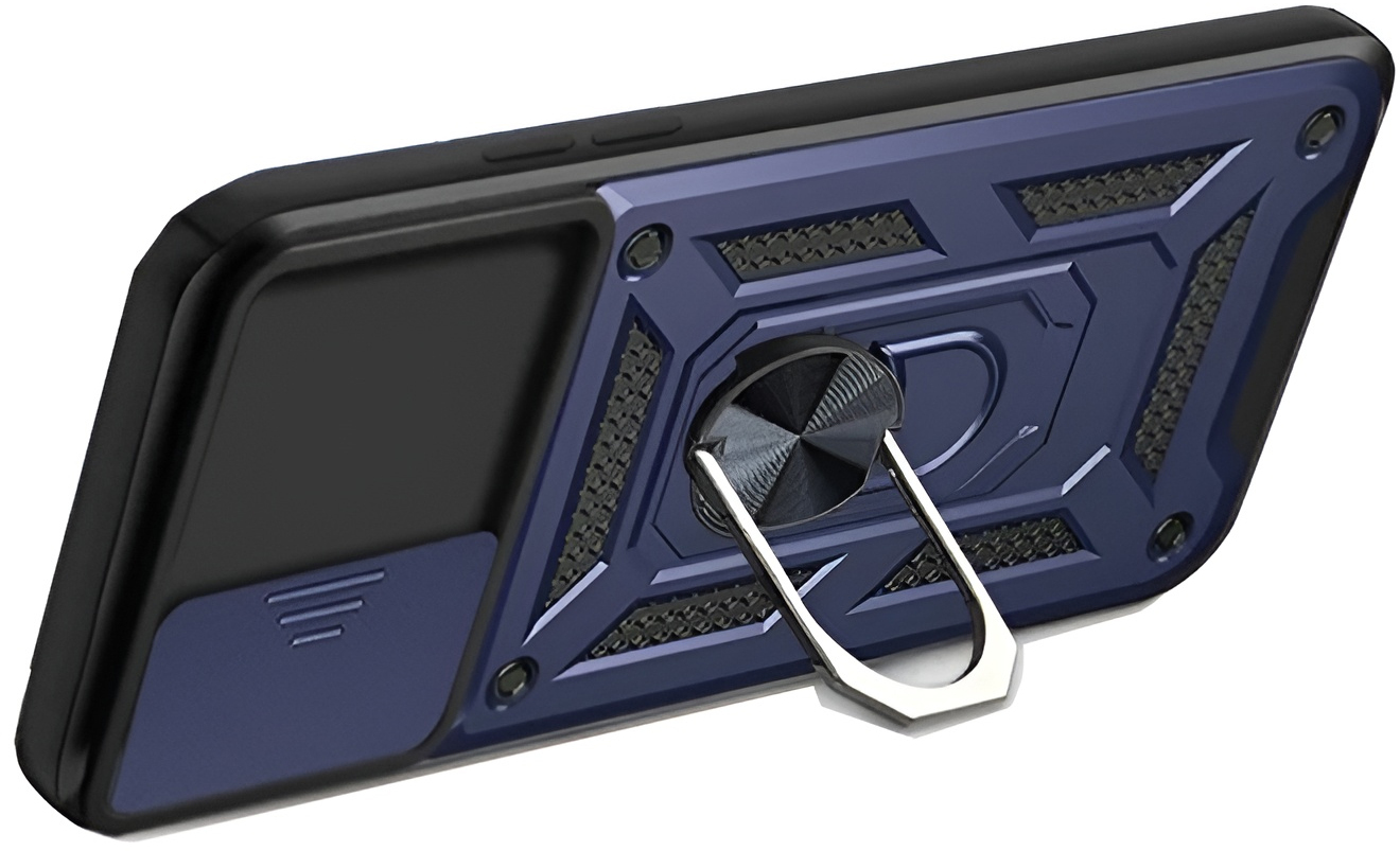 Гнучка силіконова панель має жорсткий металізований корпус та кільце-підставку для пальця. Чохол здатний витримати навіть сильні удари та подряпини.