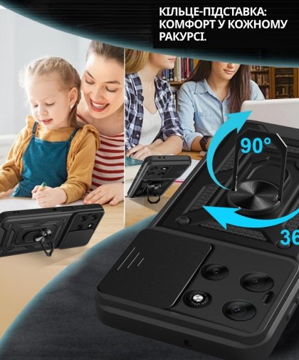 Гнучка силіконова панель має жорсткий металізований корпус та кільце-підставку для пальця. Чохол здатний витримати навіть сильні удари та подряпини.