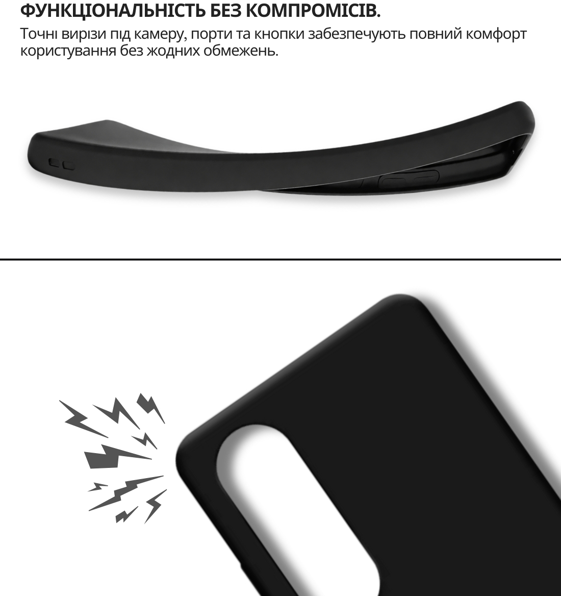 Чохол легко встановлюється, щільно прилягає до поверхні смартфона, не залишаючи повітряних зазорів, які могли б накопичувати пил, бруд або вологу. Легкий і непомітний, він не додає зайвого об'єму чи ваги вашому пристрою, забезпечуючи надійний захист від ударів, пошкоджень і вологи.
