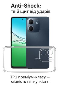 Anti-Shock панель забезпечує захист вашого телефону від падінь, ударів та подряпин. Матеріал TPU є еластичним, що дозволяє панелі адаптуватися до форми вашого смартфону та забезпечує зручний доступ до усіх кнопок та портів.
