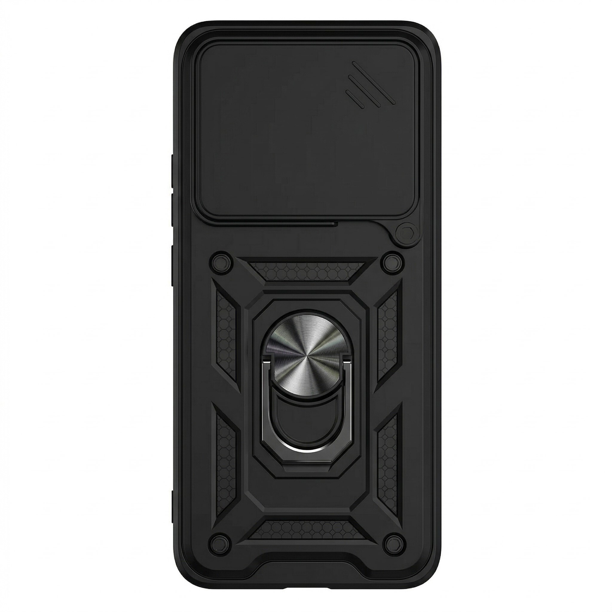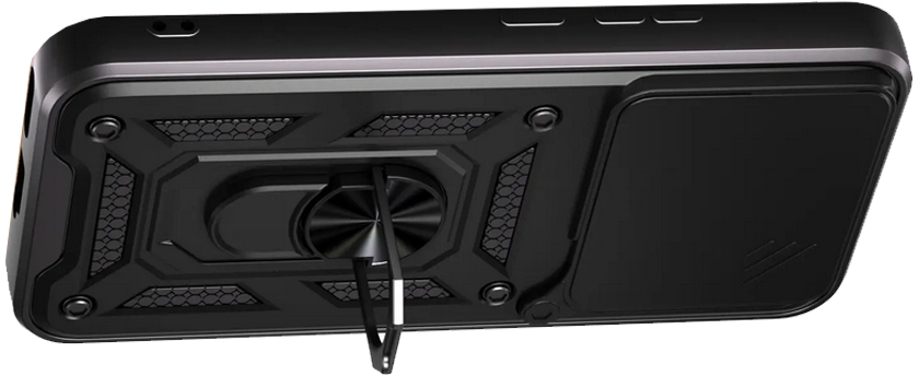 Гнучка силіконова панель має жорсткий металізований корпус та кільце-підставку для пальця. Чохол здатний витримати навіть сильні удари та подряпини.