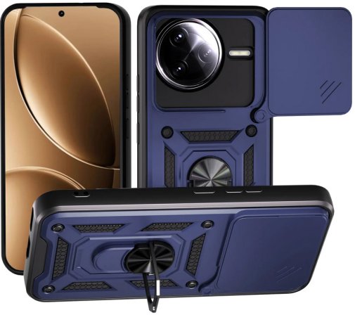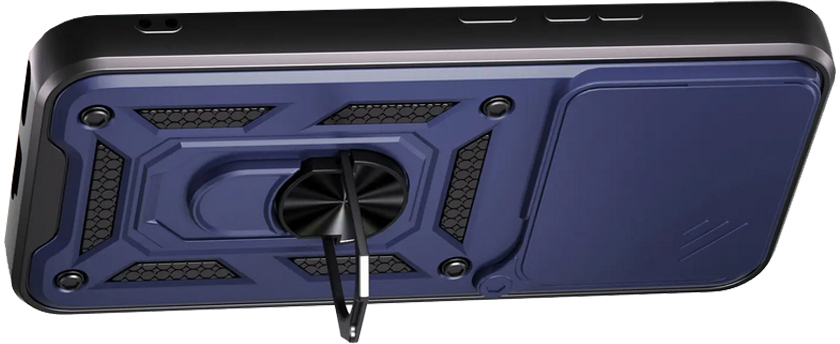 Гнучка силіконова панель має жорсткий металізований корпус та кільце-підставку для пальця. Чохол здатний витримати навіть сильні удари та подряпини.