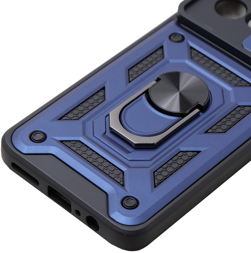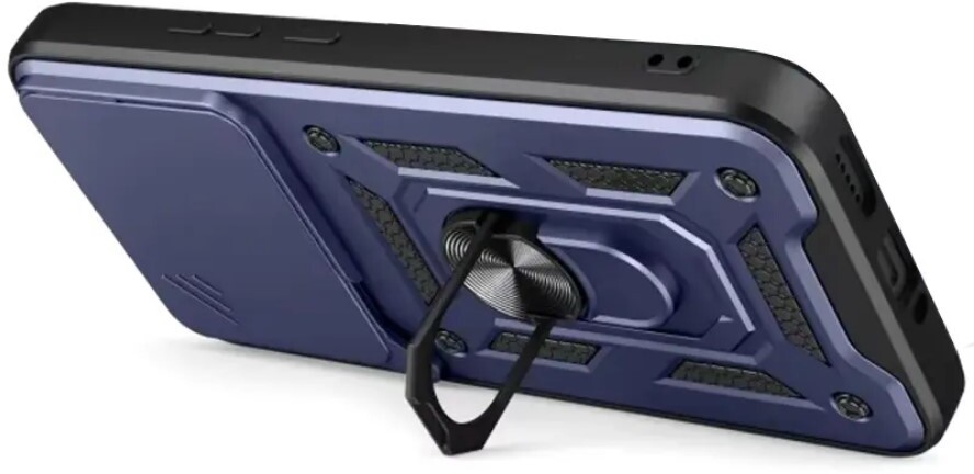 Гнучка силіконова панель має жорсткий металізований корпус та кільце-підставку для пальця. Чохол здатний витримати навіть сильні удари та подряпини.