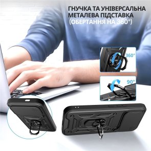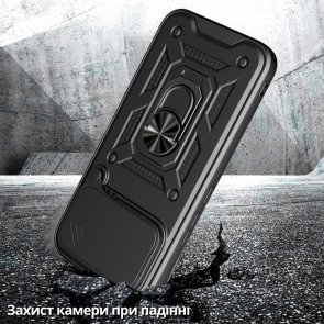 Гнучка силіконова панель має жорсткий металізований корпус та кільце-підставку для пальця. Чохол здатний витримати навіть сильні удари та подряпини.