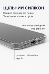 "Тонкий і еластичний силіконовий чохол забезпечує надійний захист вашого смартфона від механічних пошкоджень, запобігаючи появі подряпин на корпусі. Завдяки високій якості матеріалу, чохол зберігає свою цілісність — він не рветься та не тріскається навіть при тривалому використанні.