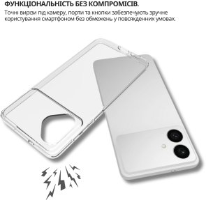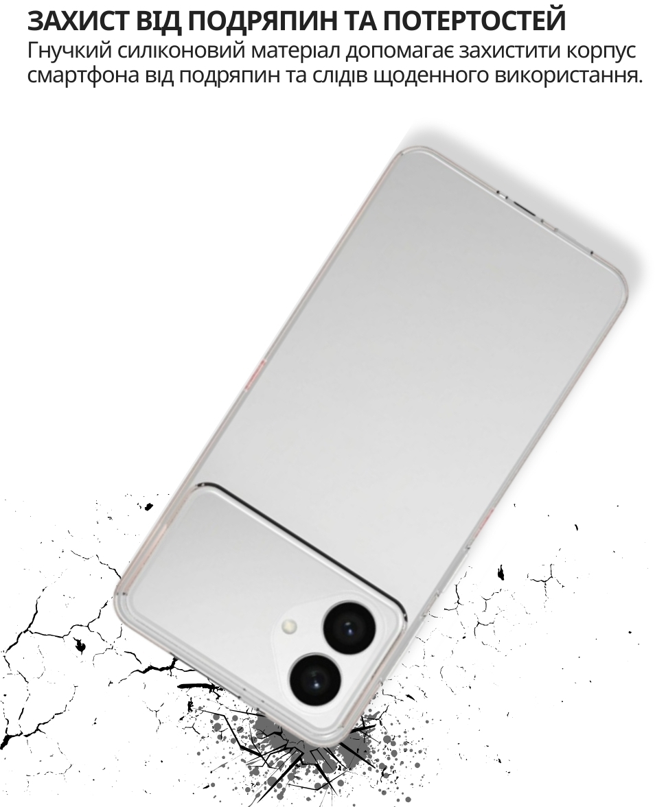 Чохол легко встановлюється, щільно прилягає до поверхні смартфона, не залишаючи повітряних зазорів, які могли б накопичувати пил, бруд або вологу. Легкий і непомітний, він не додає зайвого об'єму чи ваги вашому пристрою, забезпечуючи надійний захист від ударів, пошкоджень і вологи.