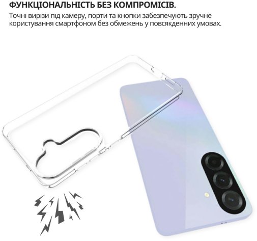 Чохол легко встановлюється, щільно прилягає до поверхні смартфона, не залишаючи повітряних зазорів, які могли б накопичувати пил, бруд або вологу. Легкий і непомітний, він не додає зайвого об'єму чи ваги вашому пристрою, забезпечуючи надійний захист від ударів, пошкоджень і вологи.