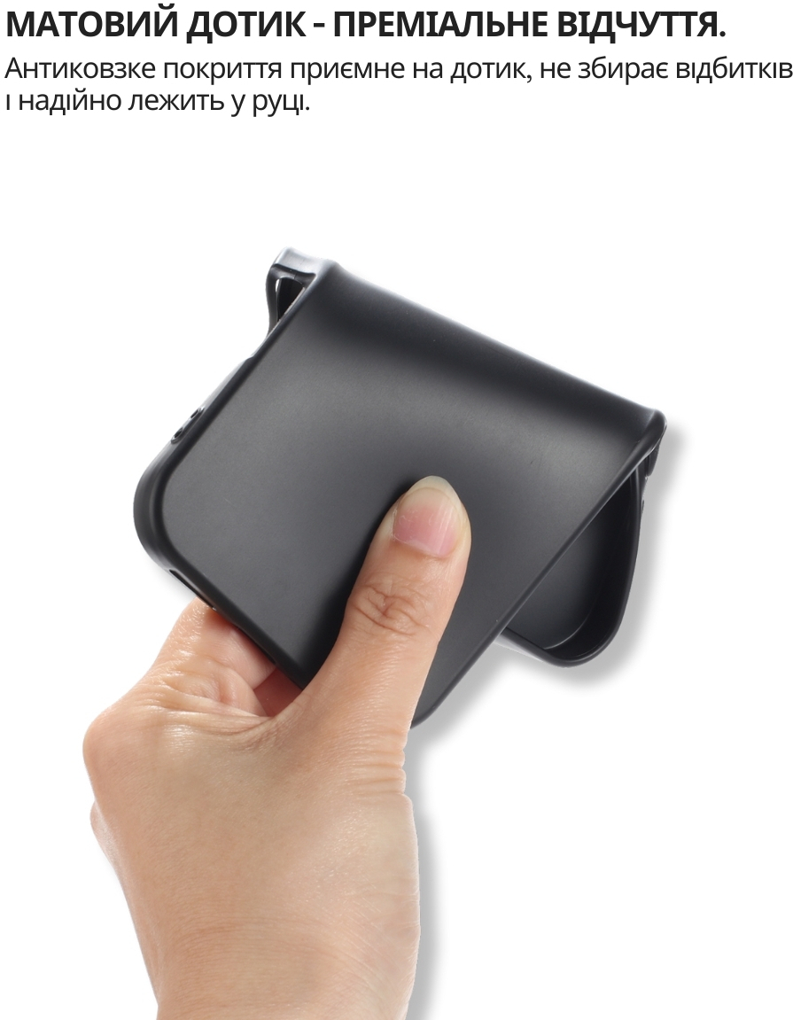Чохол легко встановлюється, щільно прилягає до поверхні смартфона, не залишаючи повітряних зазорів, які могли б накопичувати пил, бруд або вологу. Легкий і непомітний, він не додає зайвого об'єму чи ваги вашому пристрою, забезпечуючи надійний захист від ударів, пошкоджень і вологи.
