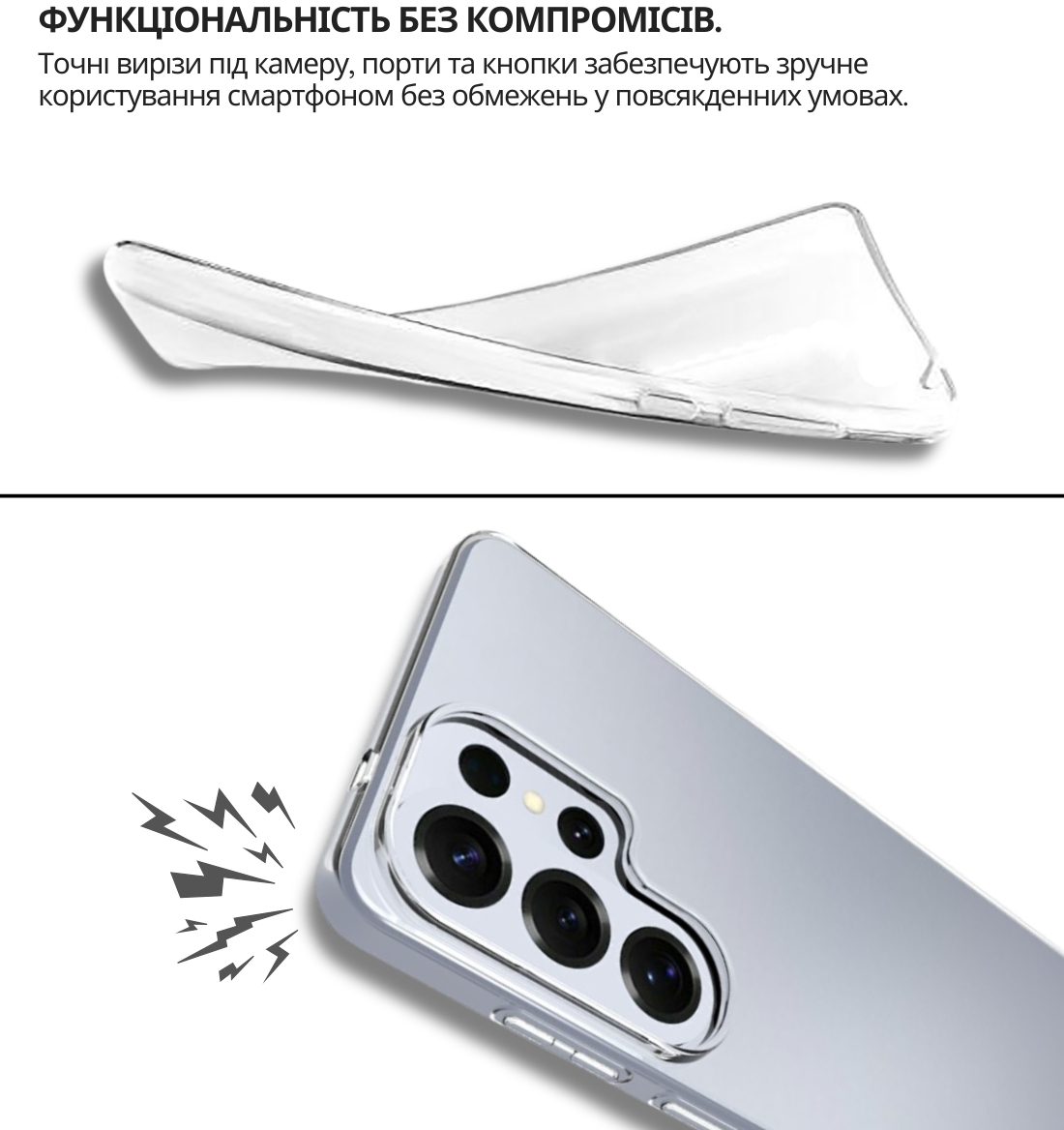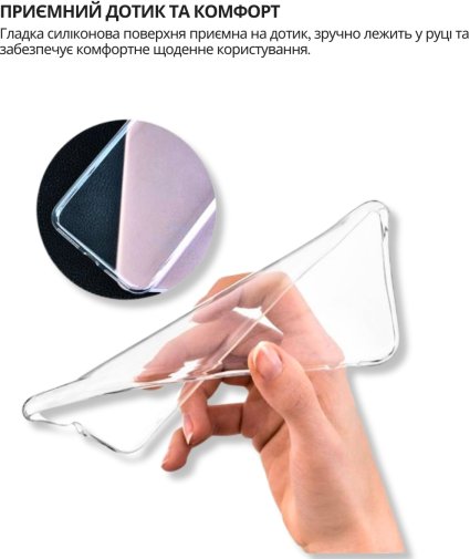 Чохол легко встановлюється, щільно прилягає до поверхні смартфона, не залишаючи повітряних зазорів, які могли б накопичувати пил, бруд або вологу. Легкий і непомітний, він не додає зайвого об'єму чи ваги вашому пристрою, забезпечуючи надійний захист від ударів, пошкоджень і вологи.