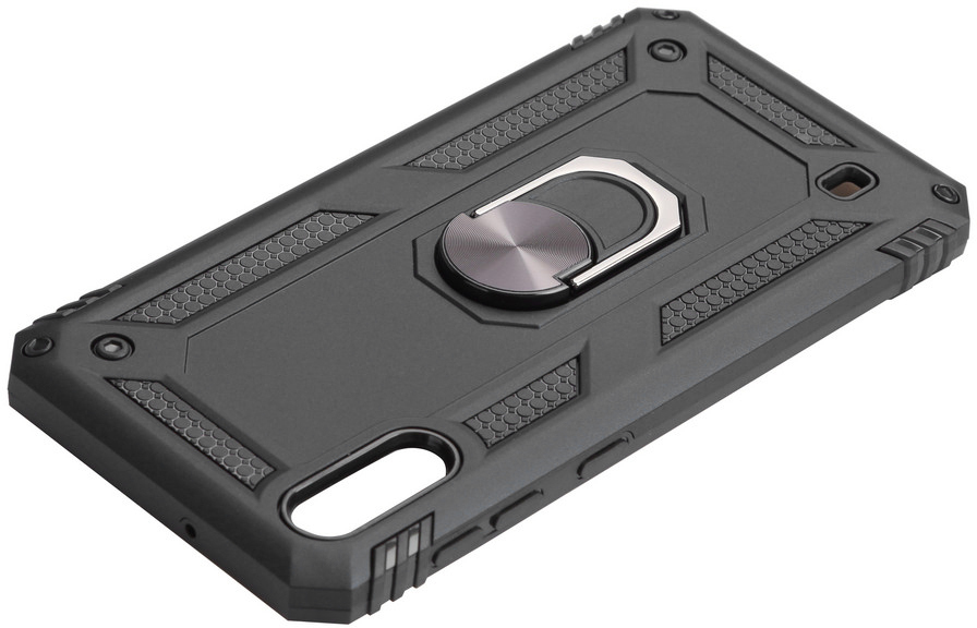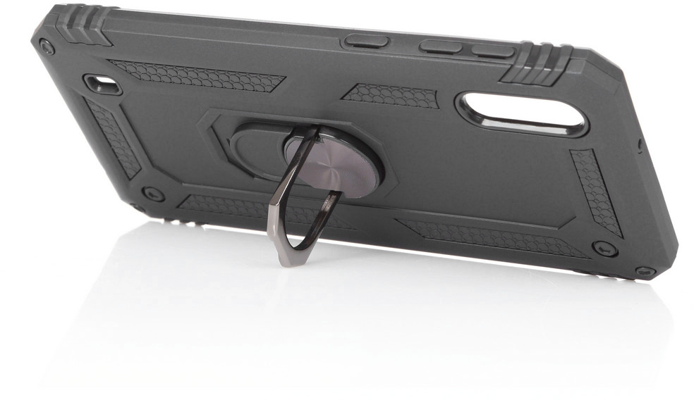 Гнучка силіконова панель має жорсткий металізований корпус та кільце-підставку для пальця. Чохол здатний витримати навіть сильні удари та подряпини.
