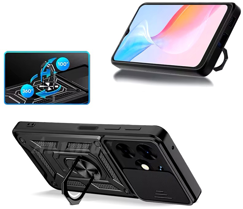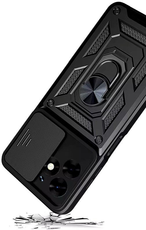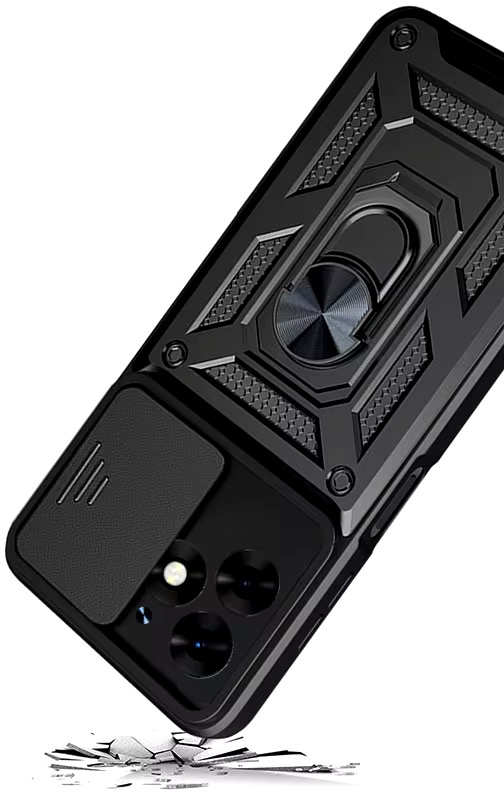 Гнучка силіконова панель має жорсткий металізований корпус та кільце-підставку для пальця. Чохол здатний витримати навіть сильні удари та подряпини.