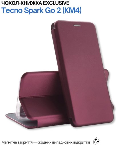 Стильний та сучасний чохол-книжка для смартфона Tecno Spark Go 2 (KM4). Чудовий аксесуар бордового кольору, з яким ґаджет буде виглядати ще привабливіше та буде захищеним від будь-яких механічних пошкоджень. Чохол-книжка оснащений відкидною кришкою, яка відкривається убік — це забезпечує швидкий доступ до дисплея телефону. Акуратні вирізи на портах не перешкоджають вільному доступу до них, а отвір для динаміка дозволить розмовляти, не відкриваючи чохол.
