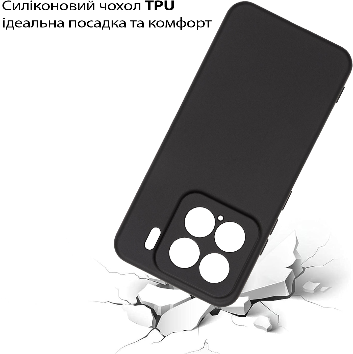 Чохол легко встановлюється, щільно прилягає до поверхні смартфона, не залишаючи повітряних зазорів, які могли б накопичувати пил, бруд або вологу. Легкий і непомітний, він не додає зайвого об'єму чи ваги вашому пристрою, забезпечуючи надійний захист від ударів, пошкоджень і вологи.