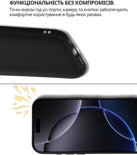 Чохол легко встановлюється, щільно прилягає до поверхні смартфона, не залишаючи повітряних зазорів, які могли б накопичувати пил, бруд або вологу. Легкий і непомітний, він не додає зайвого об'єму чи ваги вашому пристрою, забезпечуючи надійний захист від ударів, пошкоджень і вологи.