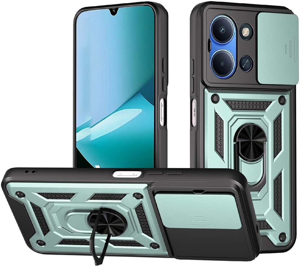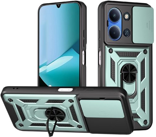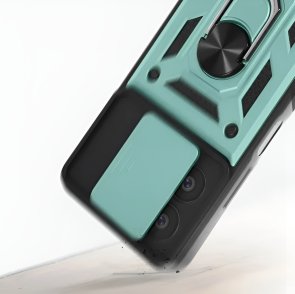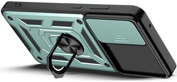 Гнучка силіконова панель має жорсткий металізований корпус та кільце-підставку для пальця. Чохол здатний витримати навіть сильні удари та подряпини.