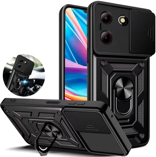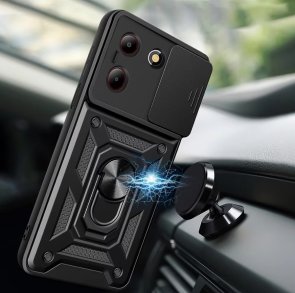 Гнучка силіконова панель має жорсткий металізований корпус та кільце-підставку для пальця. Чохол здатний витримати навіть сильні удари та подряпини.