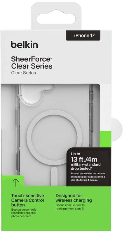 Belkin Clear Series — це преміальний прозорий захисний чохол для iPhone 17, розроблений для тих, хто хоче зберегти оригінальний вигляд смартфона, не жертвуючи захистом. Корпус виконано з комбінації термопластичного поліуретану (TPU) та полікарбонату (PC): TPU забезпечує гнучкість і амортизацію ударів, а PC — структурну жорсткість і стійкість навіть при низьких температурах. Чохол надтонкий і легкий, не додає об’єму, але витримує падіння з висоти до 4 метрів (тестовано за стандартами Belkin).