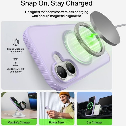 Belkin Grip Series для iPhone 17 (MSA034HQLV, Lavender) — ніжний магнітний чохол у лавандовому відтінку з протиковзною текстурою, захистом від падінь до 2 м і повною сумісністю з MagSafe. Тонкий корпус із TPU (з перероблених матеріалів), вигнуті краї, поліровані кнопки та напівпрозоре покриття з м’яким фінішем. Ідеальний баланс естетики, комфорту й надійності — для тих, хто хоче стильного та екологічного захисту.