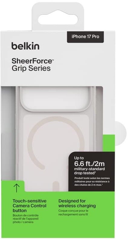 Belkin Clear Series — це преміальний прозорий захисний чохол для iPhone 17 Pro, розроблений для тих, хто хоче зберегти оригінальний вигляд смартфона, не жертвуючи захистом. Корпус виконано з комбінації термопластичного поліуретану (TPU) та полікарбонату (PC): TPU забезпечує гнучкість і амортизацію ударів, а PC — структурну жорсткість і стійкість навіть при низьких температурах. Чохол надтонкий і легкий, не додає об’єму, але витримує падіння з висоти до 4 метрів (тестовано за стандартами Belkin).