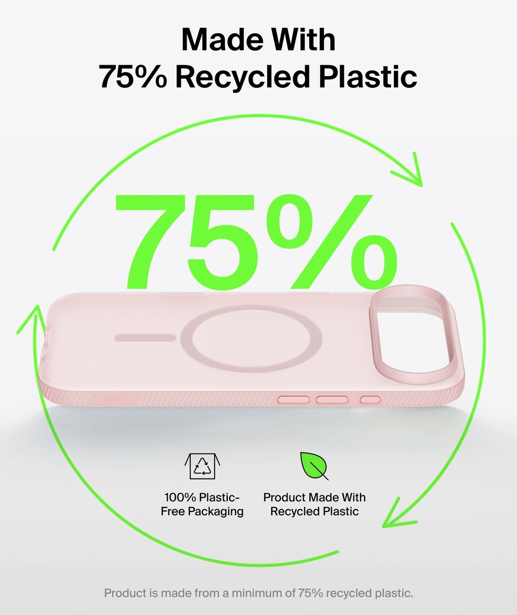 Чохол Belkin Grip Series для iPhone Air (MSA037HQPK, Pink) — стильний захист із протиковзною текстурою, сумісністю з MagSafe і захистом від падінь до 2 м. Виготовлений із TPU із перероблених матеріалів, має вигнуті краї, поліровані кнопки та напівпрозоре покриття в рожевому кольорі. Ідеальний для тих, хто шукає естетику й надійність.