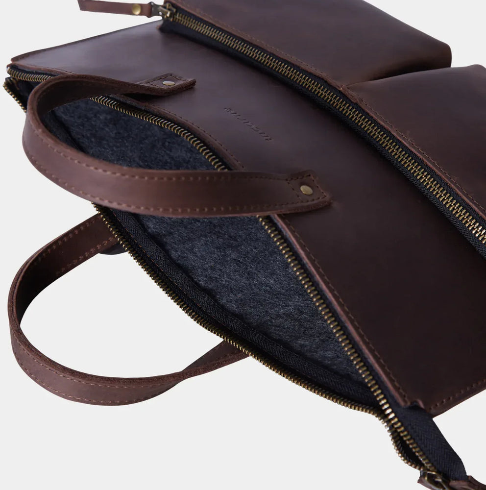 Incarne Brave — шкіряна сумка-чохол для тих, хто хоче захистити MacBook у виробі із натуральних матеріалів, що живе і старіє разом із господарем. Стримана форма, зручні кишені спереду, м'яка підкладка всередині — усе це робить Brave не просто аксесуаром, а довготривалим вибором.
