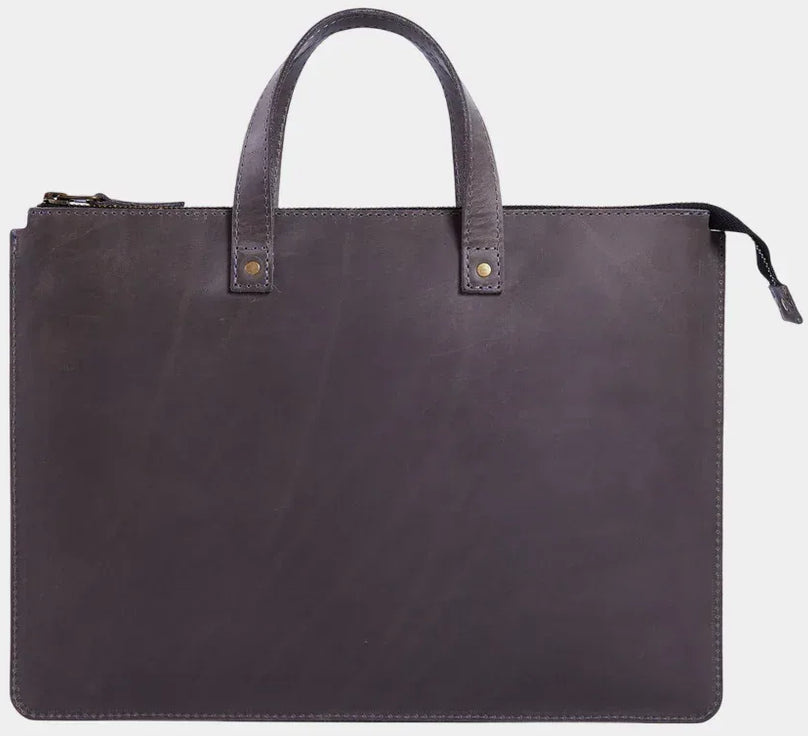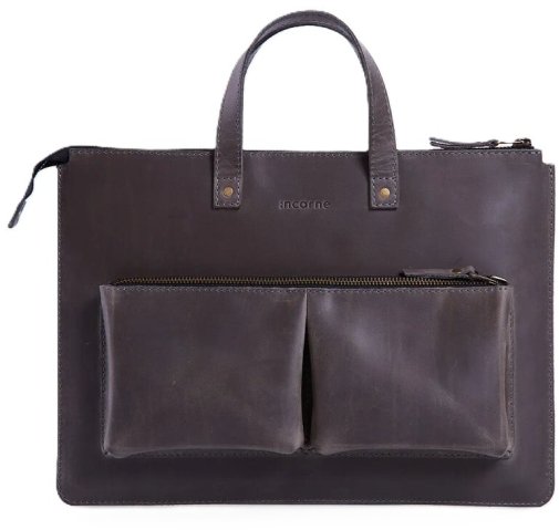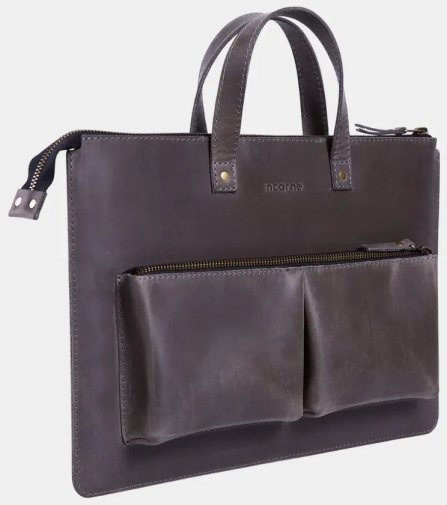 Зовні чохол виглядає лаконічно: рівні лінії, стримана форма, вінтажна фактура натуральної шкіри, яка з часом набуває власного характеру. Такий виріб однаково органічно вписується в чоловічий і жіночий стиль — дизайн Brave свідомо універсальний. На лицевій панелі розміщені дві місткі кишені для аксесуарів: миші, блока живлення, дротів, невеликих документів чи всього, що потрібно мати під рукою, не відкриваючи основний відсік.