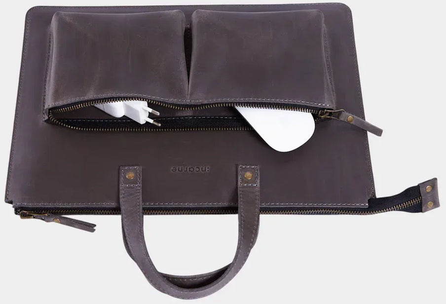 Incarne Brave — шкіряна сумка-чохол для тих, хто хоче захистити MacBook у виробі із натуральних матеріалів, що живе і старіє разом із господарем. Стримана форма, зручні кишені спереду, м'яка підкладка всередині — усе це робить Brave не просто аксесуаром, а довготривалим вибором.