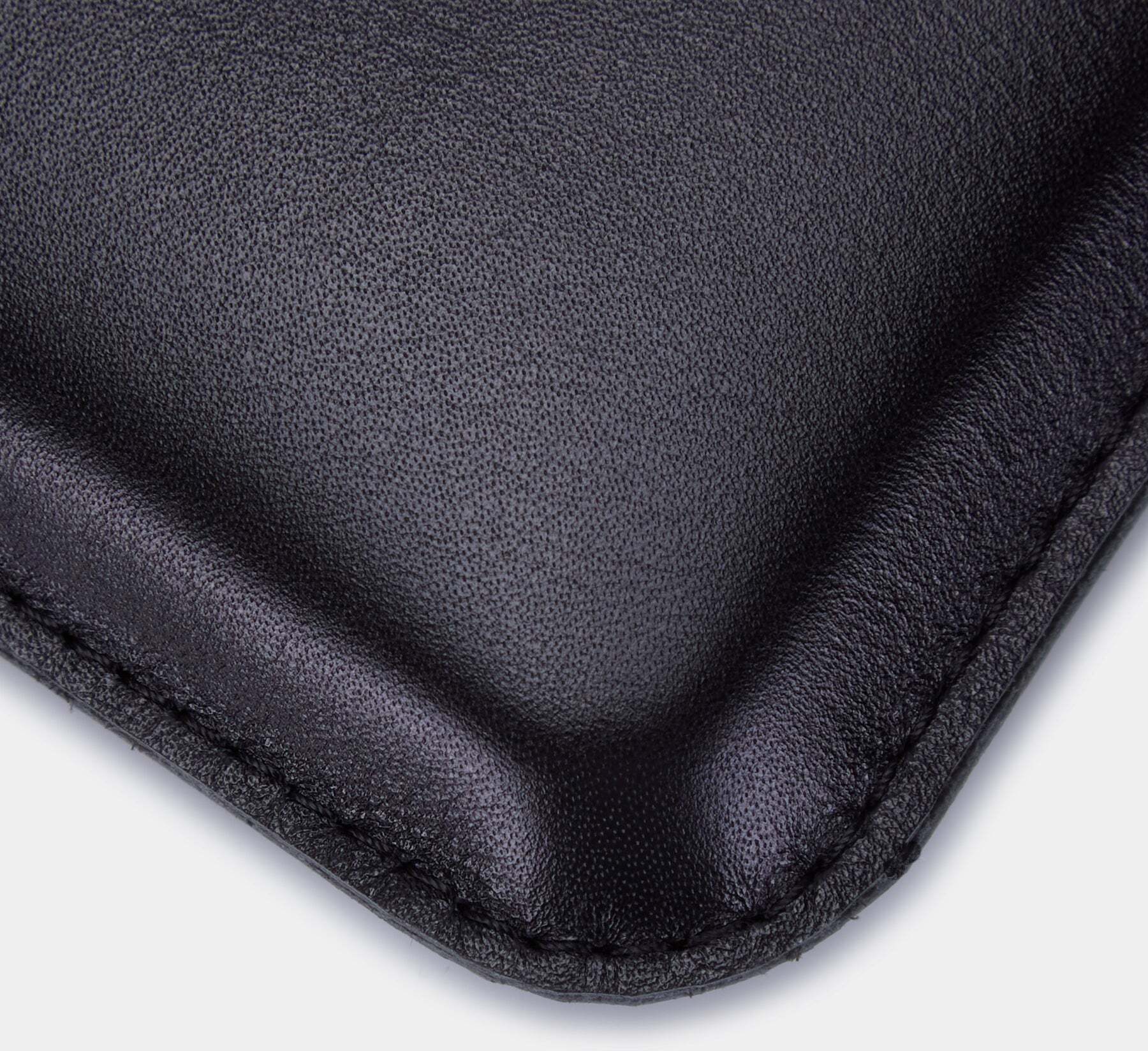 Мінімалістичний шкіряний чохол INCARNE ClineUp виготовлений з преміальної шкіри. Класична шкіра має незначний глянцевий блиск і гладку фактуру, приємну на дотик. На її поверхні не залишаються плями від крапель дощу або потертості. Матеріал досить еластичний і щільний.