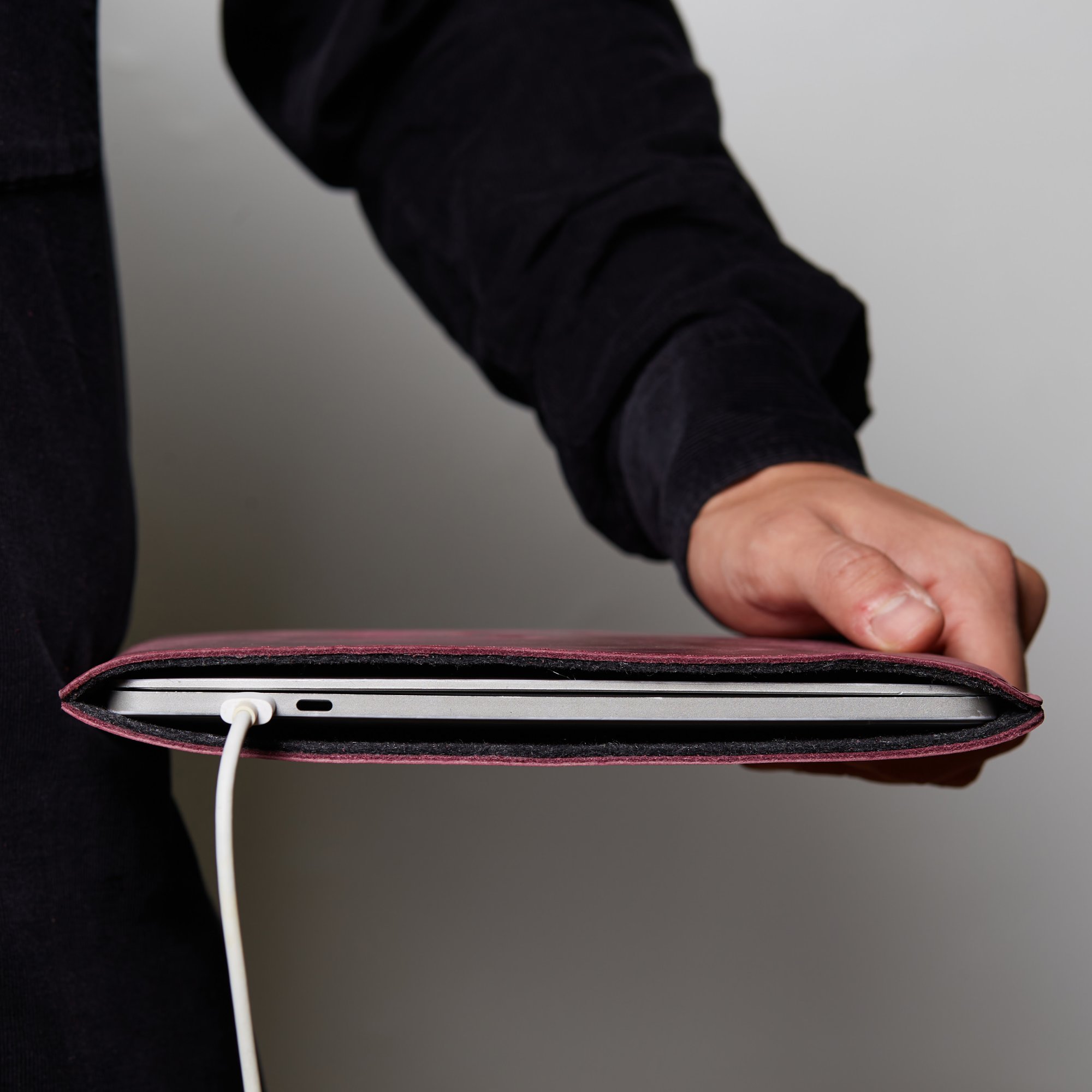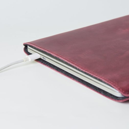 Дизайн дозволить вам заряджати ноутбук, не виймаючи його з чохла. Спереду нанесений логотип INCARNE. Всередині є підкладка зі штучного фетру. Чохол спеціально розроблений для MacBook Pro з діагоналлю екрана 13-14" дюймів.