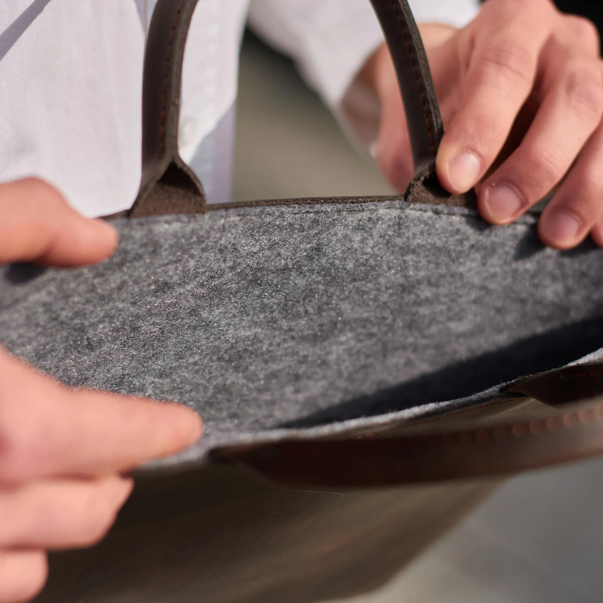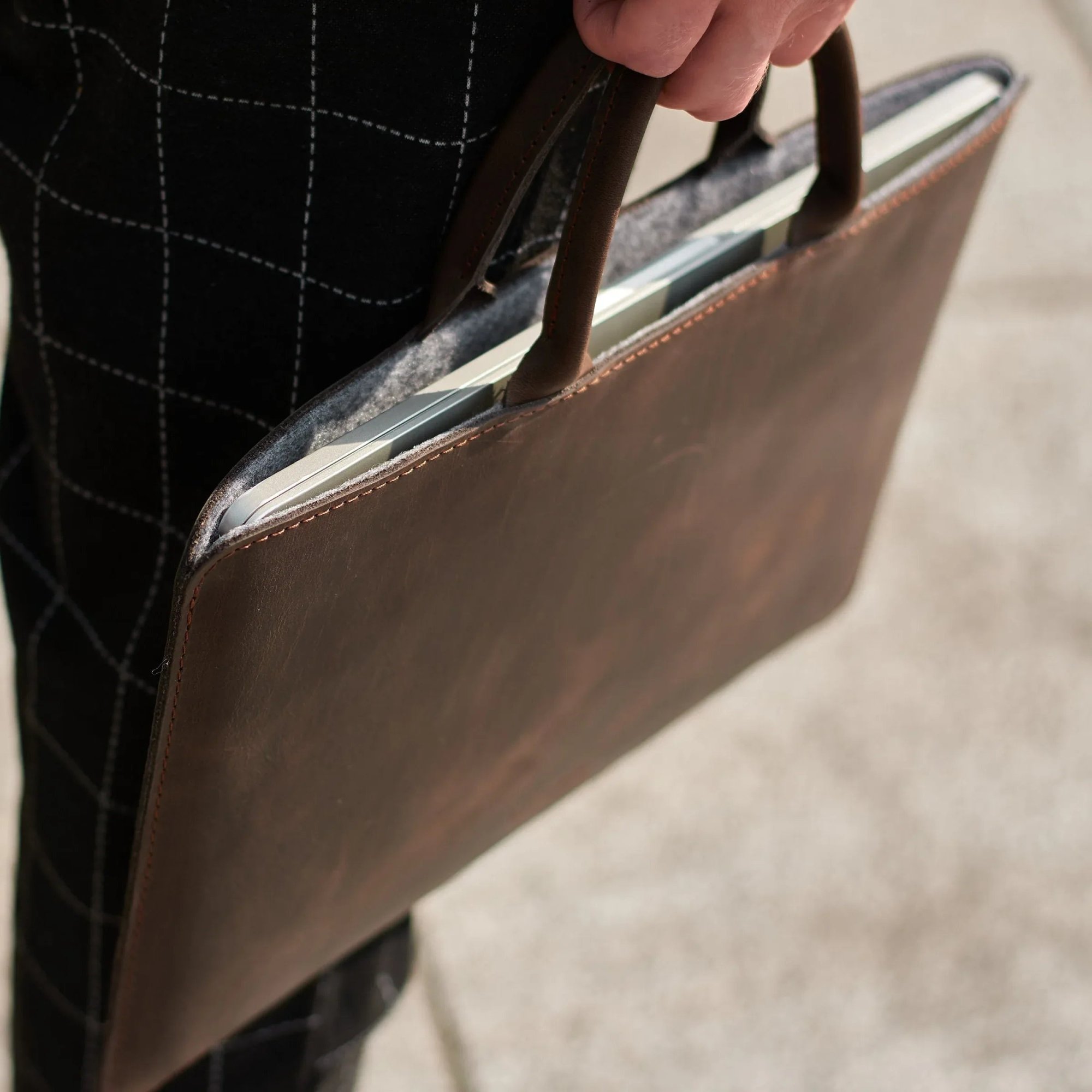 Всередині знаходиться підкладка з фетру. Дві комфортних ручки роблять чохол ідеальним для використання у повсякденному житті. Можна брати його як на роботу в офіс, так і в подорож. Виготовляється без застібки.