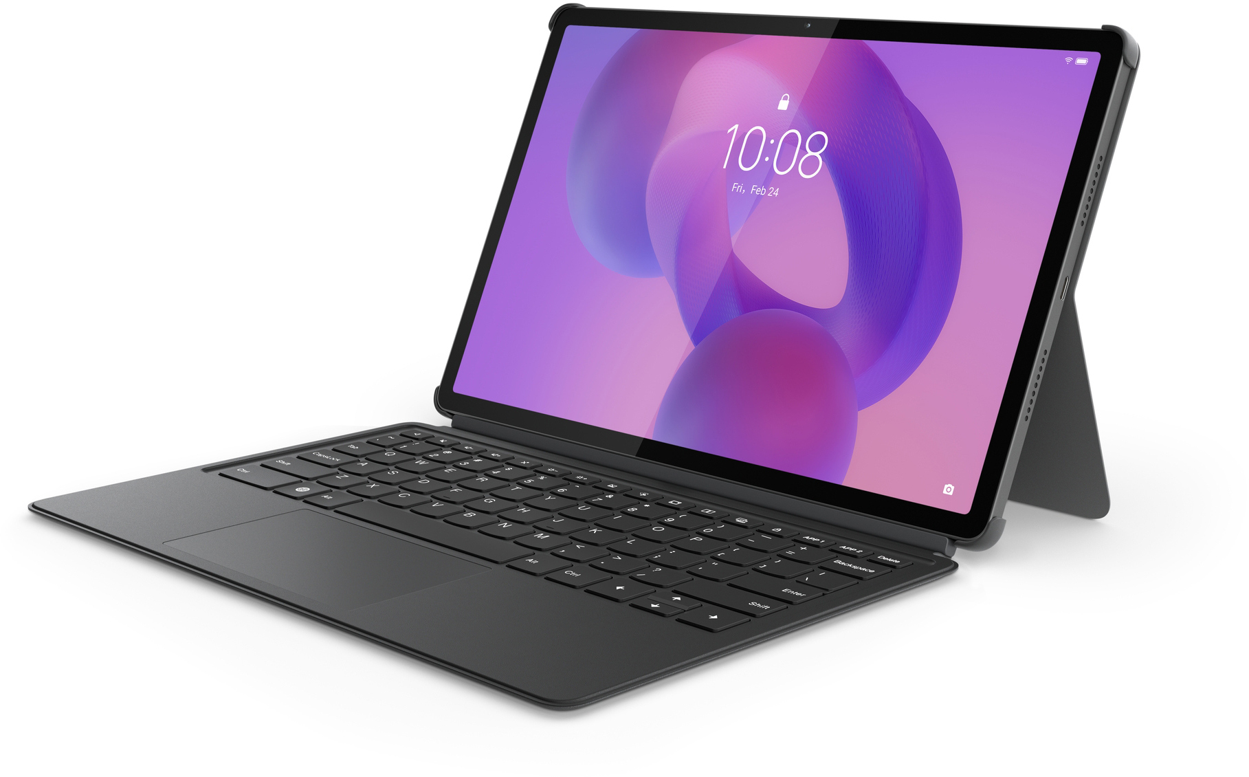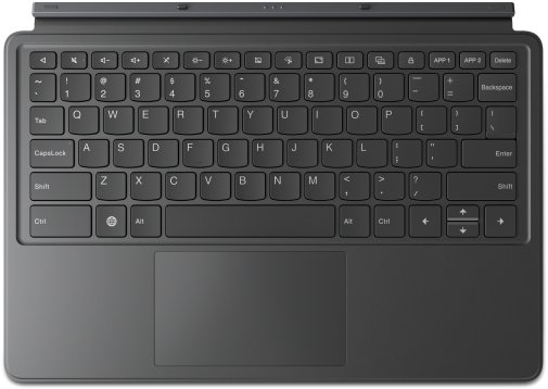 Клавіатура підключається бездротово через інтерфейс Pogo-pin, не потребуючи додаткової батареї чи зарядки. Вона оснащена мембранними клавішами з глибиною ходу 1,5 мм, що забезпечує комфортне та природне друкування без швидкої втоми рук. Великий трекпад розміром 62 × 105 мм дозволяє точно керувати курсором, редагувати тексти та переміщатися по екрану, роблячи роботу з планшетом подібною до ноутбука.