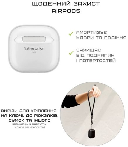 Чохол Native Union (RE) Clear для AirPods 4th Gen — це елегантний, повністю прозорий захисний кейс преміумкласу, створений для тих, хто хоче зберегти оригінальний мінімалістичний дизайн своїх AirPods 4, але при цьому забезпечити надійний захист від повсякденних ризиків. Ця модель з серії (RE) поєднує екологічну відповідальність, високу міцність і кристальну прозорість, яка не жовтіє з часом — ідеальний вибір для стильних користувачів, які цінують якість, естетику та турботу про планету.