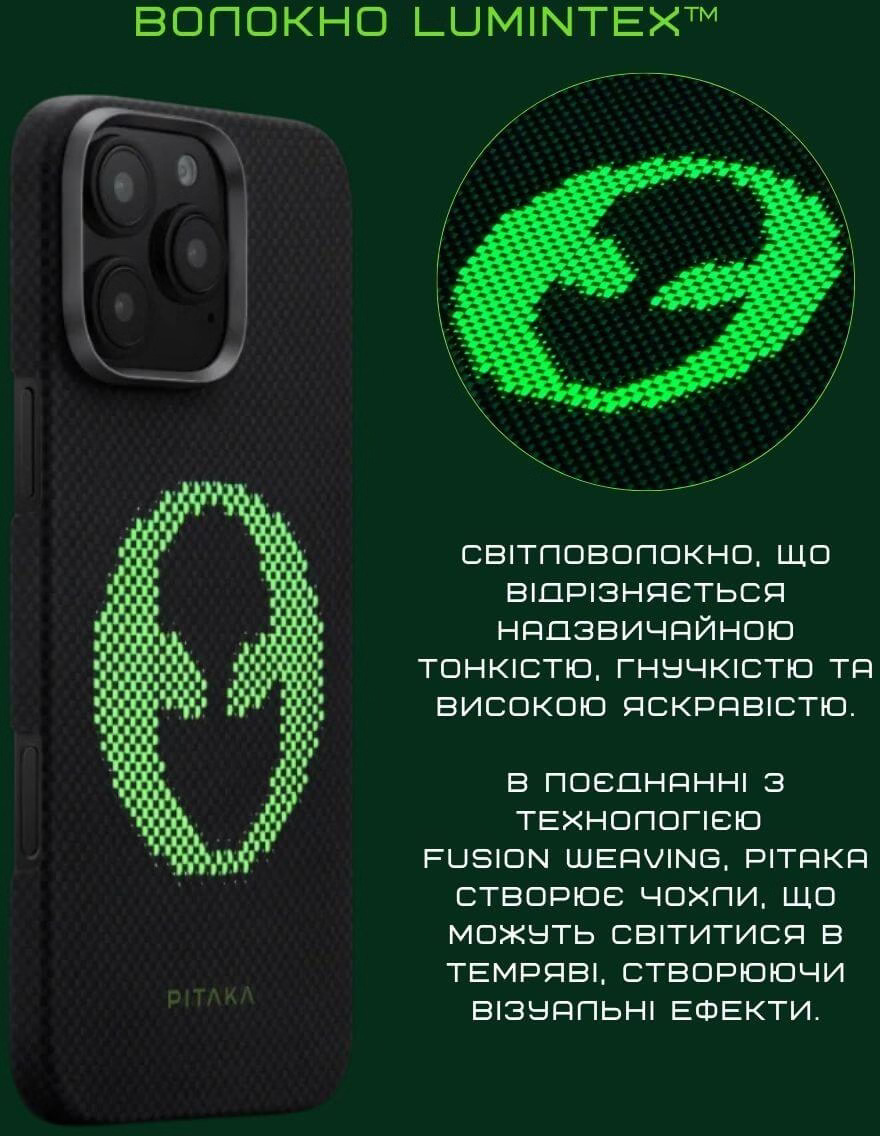 Pitaka Tactile Woven Case Aries Alien — це вибір для тих, хто хоче, щоб аксесуар говорив про особистість так само виразно, як і сам смартфон. Унікальний дизайн, що світиться у темряві, преміальні матеріали та бездоганна сумісність із MagSafe роблять цей чохол колекційним предметом, а не просто захистом.