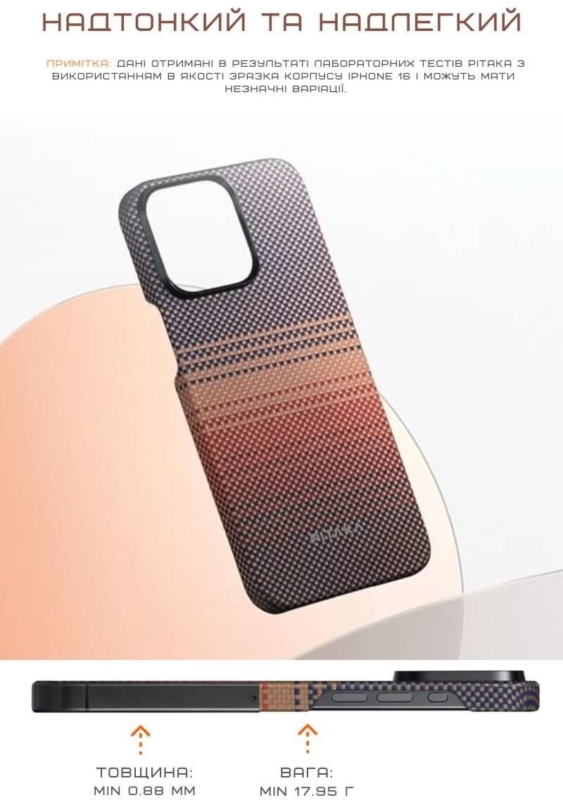 Виготовлений з арамідного волокна, яке забезпечує високий рівень захисту для вашого смартфона. Завдяки процесу вакуумного формування, багаторазового полірування та фарбування дизайн чохла має вигляд привабливих переплетених візерунків, які покращують зчеплення та зручні в руці. Металева рамка забезпечує оптимізований захист для об’єктива камери. Кожен край і кут виробу зроблені гладкими, а їх продумане оформлення роблять чохол тоншим і зручнішим у використанні. Текстура дає надійний захист від випадкового зісковзування та приємна на дотик.