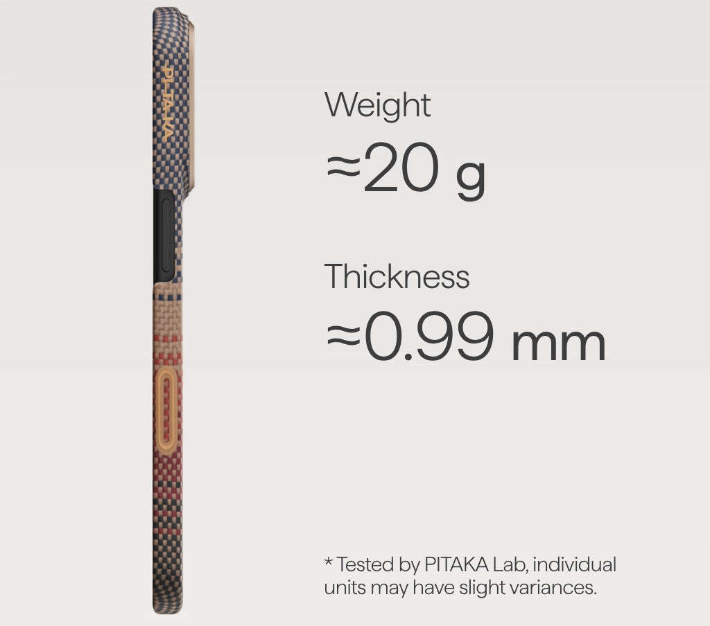 Виготовлений з арамідного волокна, чохол має тканинну текстуру, що надає преміумвідчуття на дотик. Вона стійка до подряпин і відбитків пальців, ніби м'яка оболонка, що обіймає пристрій, зберігаючи його оригінальні лінії без зайвого об'єму — товщина всього 2 мм і вага близько 36 г роблять його майже непомітним, дозволяючи насолоджуватися природним відчуттям iPhone, ніби ви тримаєте його без чохла, але з впевненістю в щоденній безпеці.