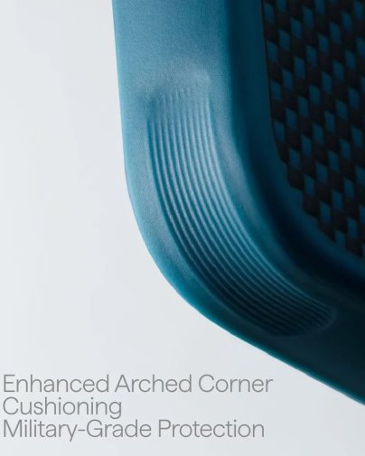 Конструкція забезпечує гібридну витривалість: жорсткий арамід захищає корпус, а гнучкий TPU поглинає удари. Захист Arched Corner з повітряними подушками на кутах мінімізує ризик пошкоджень при падінні. Вбудоване магнітне кільце MagEZ дозволяє швидко заряджати пристрій та сумісне з аксесуарами MagSafe.